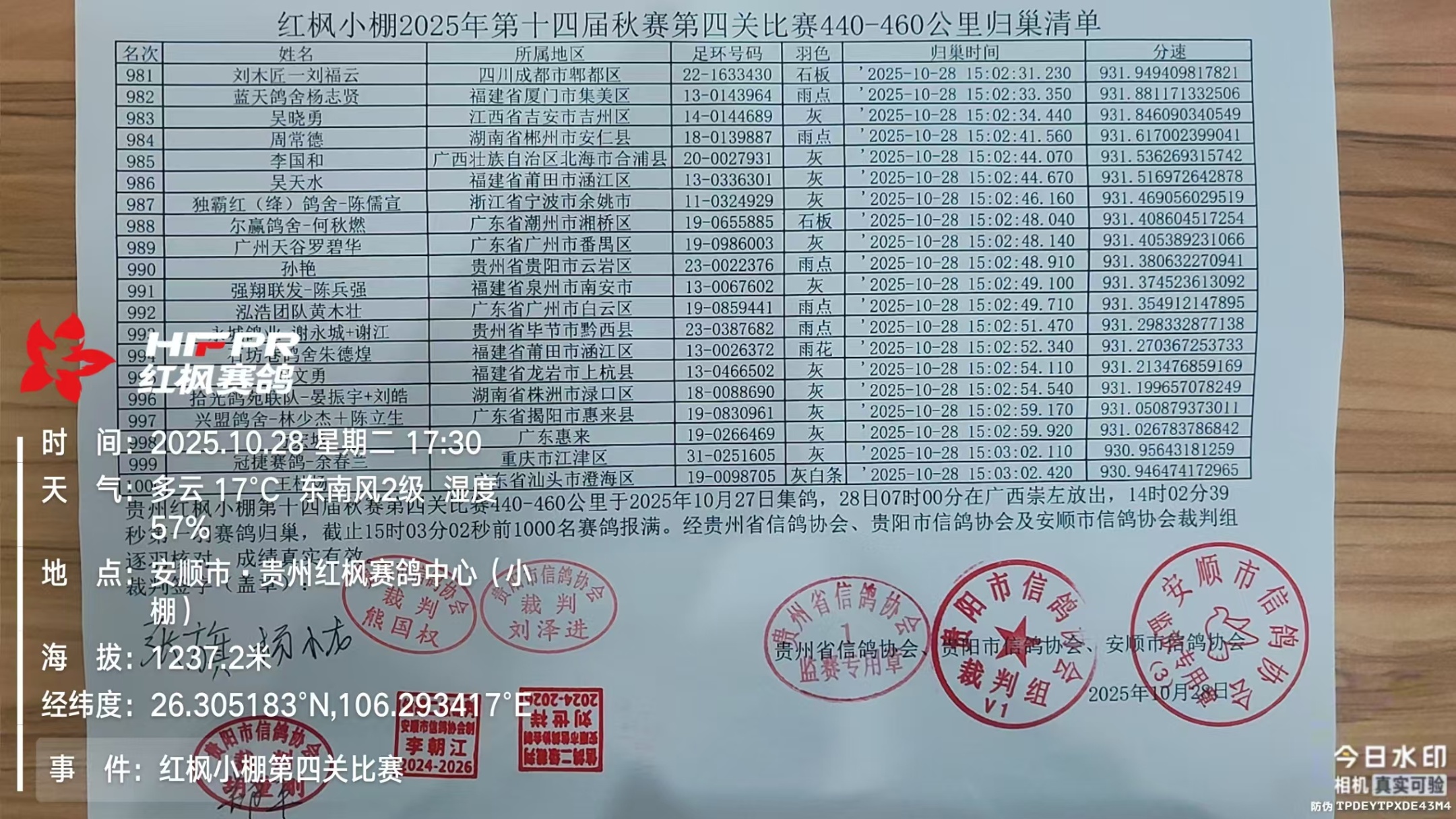 2025年秋赛四关综合鸽王获奖名单